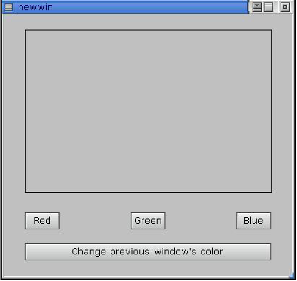 В предыдущей программе, Вы использовали сгенерированную ABW_xxx декларацию, чтобы обратиться к указателю экземпляра диалога. Вы не можете использовать эту декларацию, когда имеете дело с многооконным режимом, так как она обращается только к последнему созданному окну. Вместо этого, Вы должны добавить код к сгенерированной функции установки окна так, чтобы он сохранил копию указателей на каждый экземпляр окна в глобальном массиве виджетов. В этой программе, вам понадобятся для работы указатели на кнопку Change PreviousWindow Color.