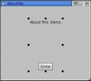 2. Из выполняющейся прикладной программы, откройте Help и выберите About Demo. Диалог откроется, и Вы будете видеть номер версии (1.00) под меткой About this Demo. Обратите внимание, что диалог появляется в местоположении, которое Вы определили.