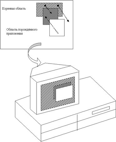 Когда Вы нажимаете кнопку мыши, драйвер устройства генерирует событие и отсылает его назад через пространство событий (в сторону корневой области). Область, которая интересуется событием, может его перехватить и обработать, например, активизировав нажатие кнопки.