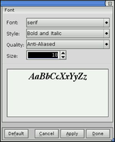 | Font | Гарнитура виджета. Просто щёлкните на этой кнопке или расположенной рядом кнопке меню, затем выберите из отобразившегося списка гарнитур. |