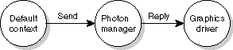 В обычном (не "напрямую") режиме, приложение отсылает запросы на прорисовку в менеджер Photon'а. Графический драйвер блокируется менеджером Photon'а.
