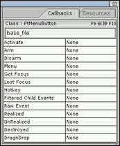 Выберите кнопку меню "File", затем переключитесь на панель управления ответными реакциями ("Callbacks). Вы увидите список ответных реакций кнопки "File".
