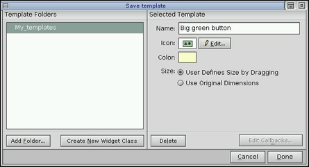 Можете при желании создать иконку для шаблона на входе палитры. Щёлкните на "Edit Icon" и затем следуйте инструкциям, данным ранее для редактирования попиксельных карт. Вы можете сделать иконку, выглядящей как виджет.