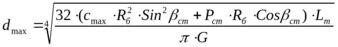 . Однако данная формула не учитывает ограничения, накладываемые на жесткость подвески допустимыми значениями периода продольно-угловых колебаний. Чтобы учесть эти ограничения, необходимо определить максимальное и минимальное значения диаметра торсионного вала, при которых подвеска вблизи статического положения будет иметь максимальную и минимальную допустимую жесткость: