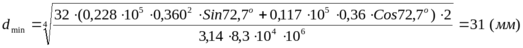 Ранее найденное значение диаметра торсиона