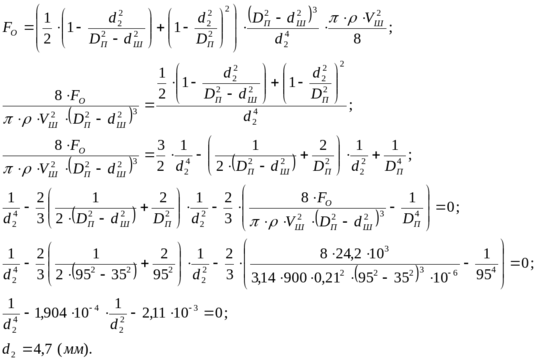 7.4. Расчет диаметров дроссельных отверстий прямого и обратного ходов