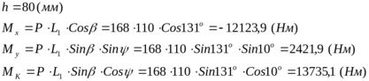 Т. к. значения всех изгибающих и крутящих моментов на соответствующих участках меньше чем в предыдущем случае, следовательно балансир прочен при горизонтальном расположении рычага.