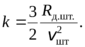 читая, что сила является функцией квадрата скорости с некоторым коэффициентом пропорциональности k, т.е. Rд.шт. (vшт) = kПриравнивая площади, получается выражение для коэффициента k: