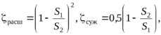 Сумма эквивалентных коэффициентов местных потерь амортизатора состоит из потерь на сужение и расширение потока жидкости в дроссельном отверстии, приведенных к скорости штока. Потери на расширение и сужение: