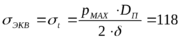 не учитываем, поскольку, при действии давления внутри полости на стенки гильзы амортизатора, осевая составляющая сил давления действует на поршень, который не имеет жесткой связи с гильзой амортизатора, поэтому эквивалентное напряжение равно окружному: