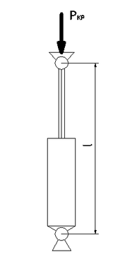 Для штока амортизатора в выдвинутом положении производим проверку на устойчивость при сжатии. Считая цилиндр абсолютно жестким на изгиб, критическую силу определяем по соответствующей формуле сопротивления материалов: