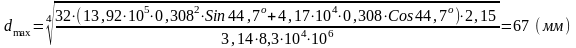 Для гусеничных машин очень важен как можно больший динамический ход подвесок, а величина статического хода имеет второстепенное значение, следовательно необходимо вычислить диаметр торсионного вала, при котором обеспечивается максимальный динамический ход: