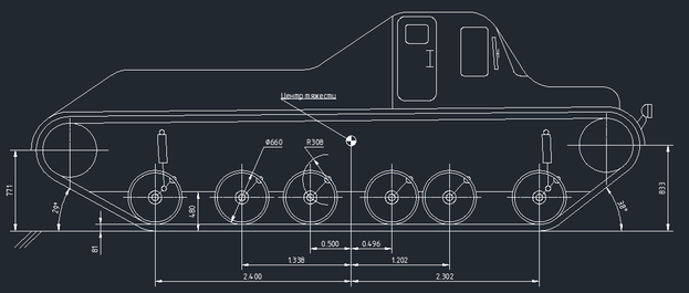 | 2 | Координаты опорных катков относительно продольной оси, проходящей через центр масс машины. | |