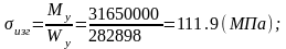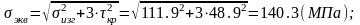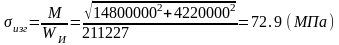 Эквивалентные напряжения от действия изгибных и касательных напряжений определяются следующим образом (по теории Мора):