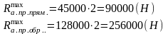 Максимальная сила сопротивления на штоке на прямом и обратном ходах: