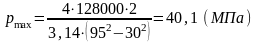 Согласно теории Мора, эквивалентные напряжения для цилиндра нагруженного внутренним давлением определяется следующим образом: