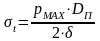 В элементе стенки амортизатора от действия внутреннего давления возникают окружные напряжения, определяемые по формуле: