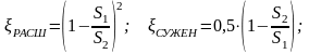 Сумма эквивалентных коэффициентов местных потерь амортизатора состоит из потерь на сужение и потерь на расширение потока жидкости в дроссельном отверстии, приведенных к скорости штока, и определяемых по следующим формулам: