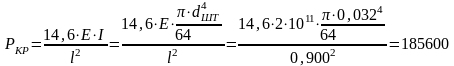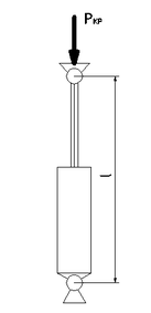 Для штока амортизатора в выдвинутом положении производится проверка на устойчивость при сжатии. Считая цилиндр абсолютно жестким на изгиб, критическая сила определяется по соответствующей формуле сопротивления материалов: