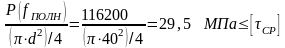 Проверим палец на условие прочности по напряжениям среза:
