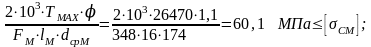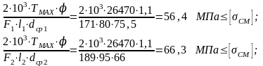 - допускаемые напряжения на смятие.