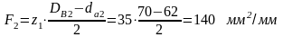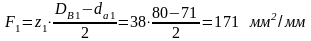 F – площадь всех боковых поверхностей зубьев с одной стороны на 1 мм длины, мм2/мм; для треугольных зубьев: