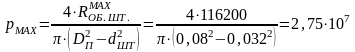 Па - максимальное внутренне давление жидкости, действующее на стенку гильзы амортизатора.