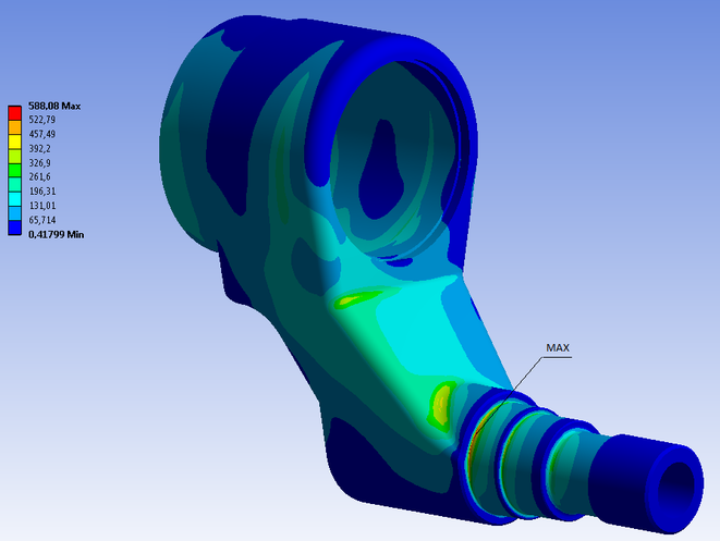 После вычисления получается, что максимальные эквивалентные напряжения равны 588,08 МПа.
