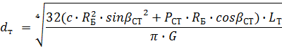 Однако, как видно из формулы, в ней никак не учитывается ограничения, накладываемые на жесткость подвески допустимыми значениями периода продольно-угловых колебаний. Связь между жесткостью подвески в районе статического хода и диаметром торсиона выражается следующей формулой [1]:
