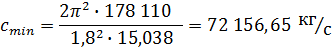 Поскольку период продольно-угловых колебаний находится в диапазоне, ограниченном значениями, неблагоприятно воздействующими на состояние экипажа, значение жесткости одной подвески вблизи статического хода будет также находиться в соответствующем диапазоне от cmin до cmax: