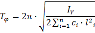 Жесткость упругих элементов найдем, исходя из рекомендуемых значений периода продольно-угловых колебаний корпуса машины Tf, который для нормального самочувствия экипаж должен находиться в диапазоне 0,5…1,8 с (верхний предел – допустимое значение по норме на «морскую болезнь», нижний – по норме на «вибрационную» болезнь).