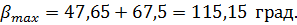 Угловое положение балансира при максимальной закрутке торсиона (угол установки отбойника):