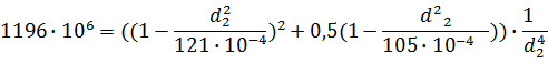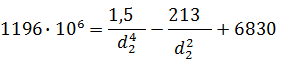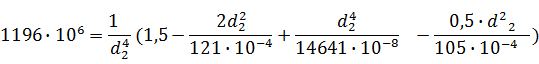 Решив квадратное уравнение относительно d2 , находим единственное действительное решение d2=5,94