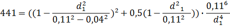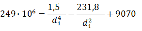 Решив квадратное уравнение относительно d1 , находим единственное действительное решение – d1=8,78