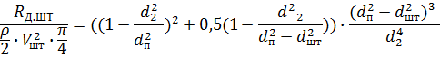 Сумма эквивалентных коэффициентов местных потерь амортизатора состоит из потерь на сужение и потерь на расширение потока жидкости в дроссельном отверстии, приведенных к скорости штока, и определяемых по следующим формулам: