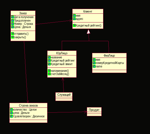 Диаграммы классов – статическая структура модели системы в терминологии классов. Включает классы, интерфейсы, объекты и кооперации, а также их отношения. Не указываются временные аспекты функционирования системы.