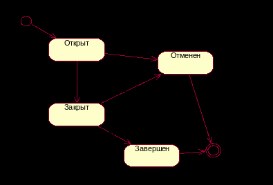 Диаграмма состояний – моделирует динамическое поведение сущностей в виде автоматных схем. Описывают возможные последовательности состояний и переходов.