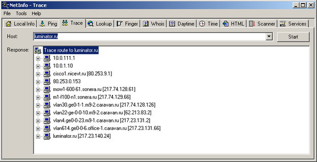 Эта утилита даёт возможность отследить текущий маршрут движения IP – дейтаграмм от одного хоста к другому. Кроме того, программа позволяет использовать IP – опцию маршрутизации от источника (source route).