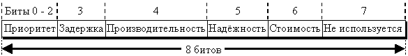 Тип сервиса (TOS). Поле "тип сервиса" разделено на 5 подразделов (рис.3).