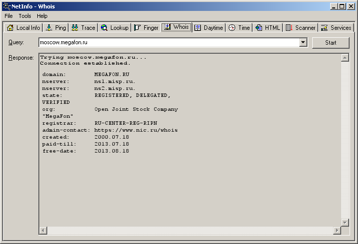 | 19 | мегафон.рф | + | - | + | whois, HTML |