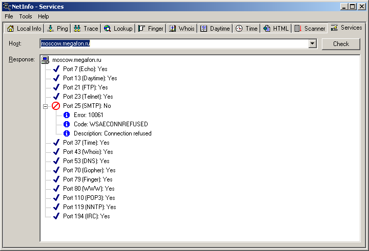 | Вариант | Удалённый хост | ping | traceroute | services | Запрос |