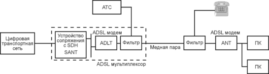 Концепция асимметричной цифровой абонентской линии (ADSL).