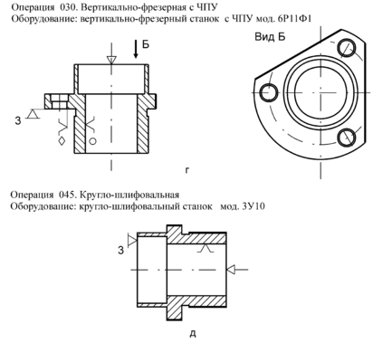а) на операциях 015, 020 может выполняться получистовая и чистовая обработка основных поверхностей втулки, схемы заготовки см. рис.6, а, б;