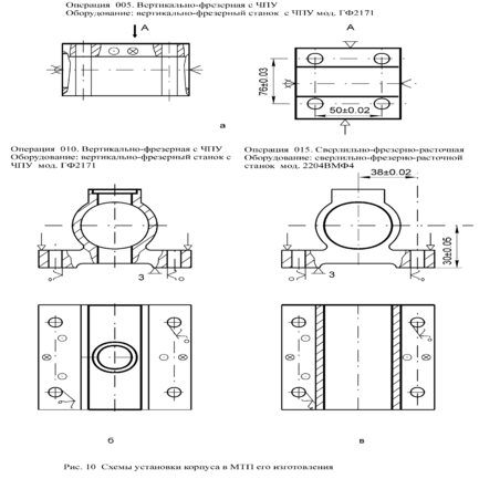 Схемы установки корпуса в МТП его изготовления показаны на рис. 10: