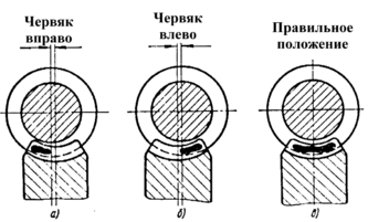 погрешности м.о.р.; отклонение от осей червяка и колеса. Регулирование – путем осевого смещения червячного колеса Контроль: