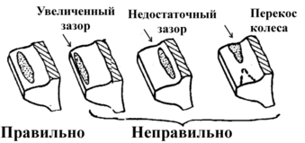 биение по торцу зуба в результате перекоса оси вращения зубчатого колеса и оси отверстия корпуса.