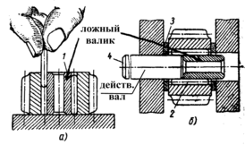 Последняя игла должна входить свободно. Затем деталь с иглами вводят на место и ложный валик заменяют на действительный вал, выталкивая ложный валик.