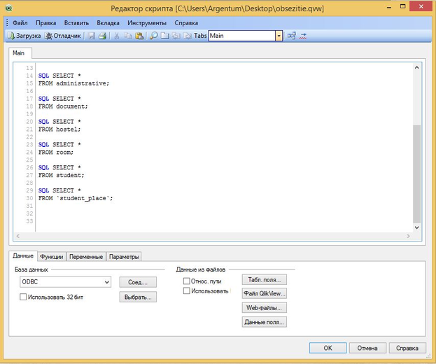 БД была создана посредством MS Access, что упростило процесс визуализации данных средствами BI QlikView. Количество записей-кортежей в БД не менее 200, для накопления статистики и построения диаграмм в среде QlikView.