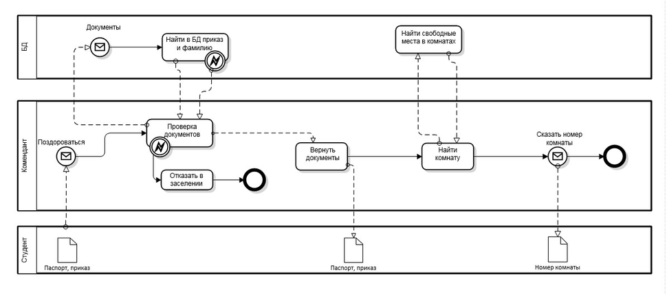 Рис 2. Диаграмма бизнес-процесса «Заселение в общежитие» в нотации BPMN