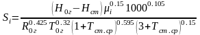 определяется в зависимости от температуры в камере сгорания и приведенной длины и равен -0.85
